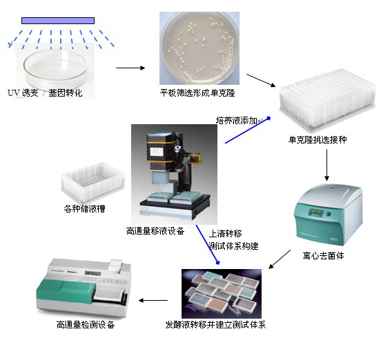传统的菌种筛选都是基于培养平板的,能得到单克隆菌株。但对于发酵表达情况的筛选,只能用烧瓶来开展,然后测量发酵液里面特定物质的含量或者目标物质的生物活性,后期的工作量非常大。